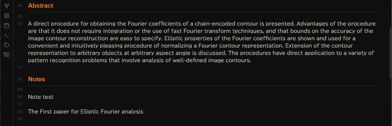 Zotero の Abstract(要約)と Notes(メモ)が表示されます。