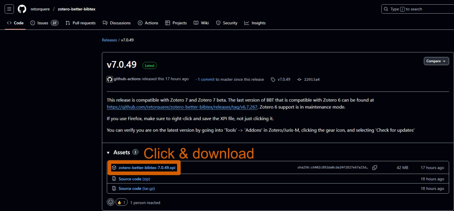 Zotero Integration プラグインを使用するには、Zotero に Better BibTeX for Zotero プラグインをインストールしておく必要があります。